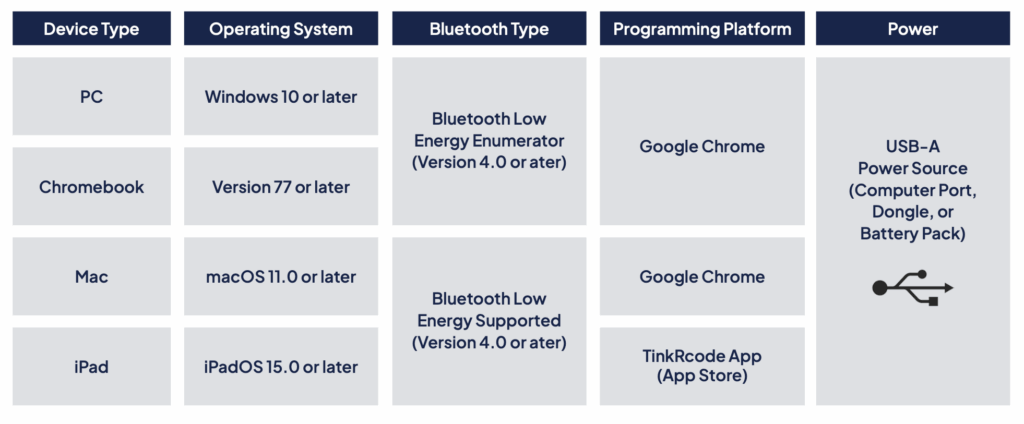 TinkRcode, our web-based, drag-and-drop programming environment, compatible with laptops, ChromeBook, and iOS.